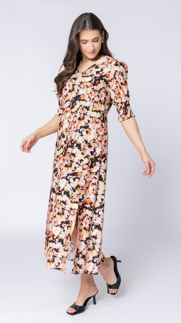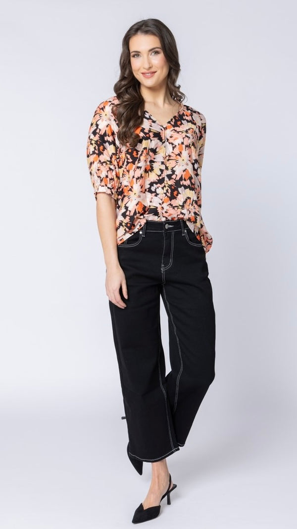 Puff Sleeve Flower Embroidered Ribbon Tie Front Top